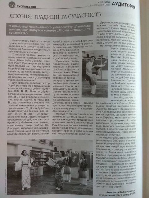 Концерт японських традиційних танців, пісні та гітари в Науково-технічній бібліотеці університету "Львівська політехніка"